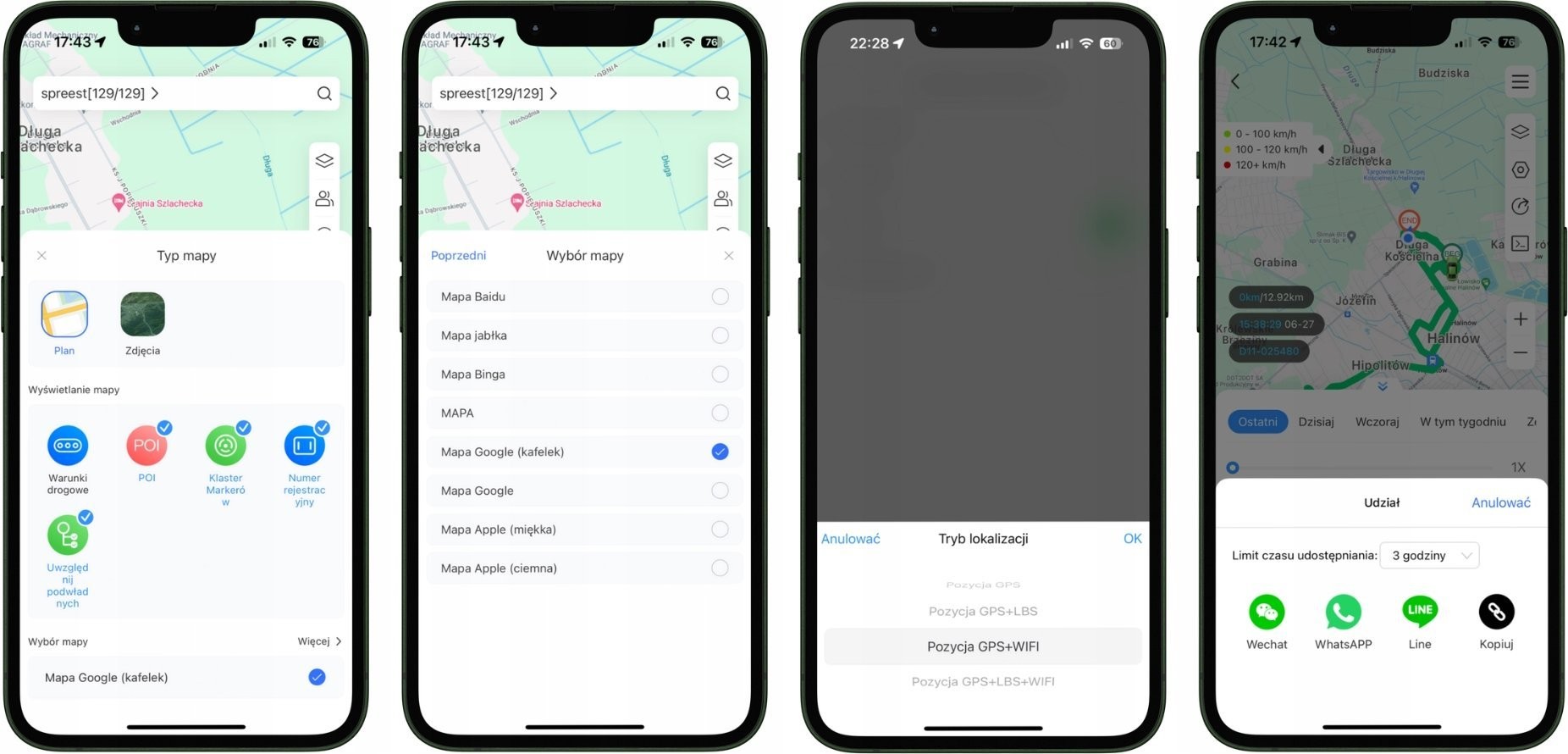 - GPS+WiFi: Oferuje dodatkową precyzję w miejscach z dostępem do sieci WiFi, co zwiększa dokładność śledzenia w budynkach i zatłoczonych miejscach. Lokalizacja jest precyzyjna w promieniu do 20 metrów.
