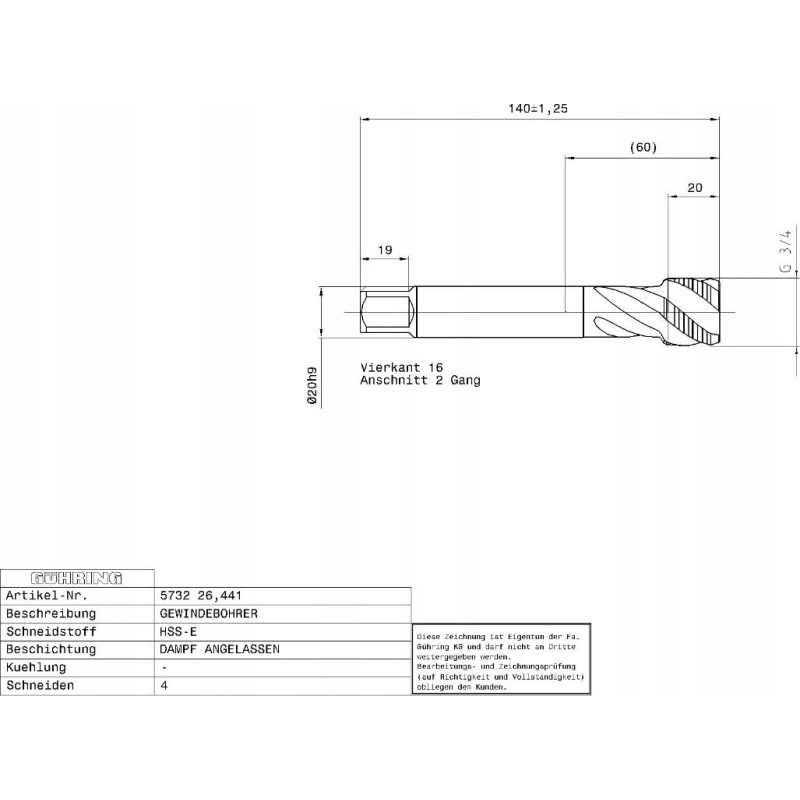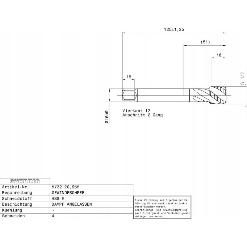 Ghring Machine tap for blind holes GUHRING HSS-E 5732 G1/2 - 14 turns