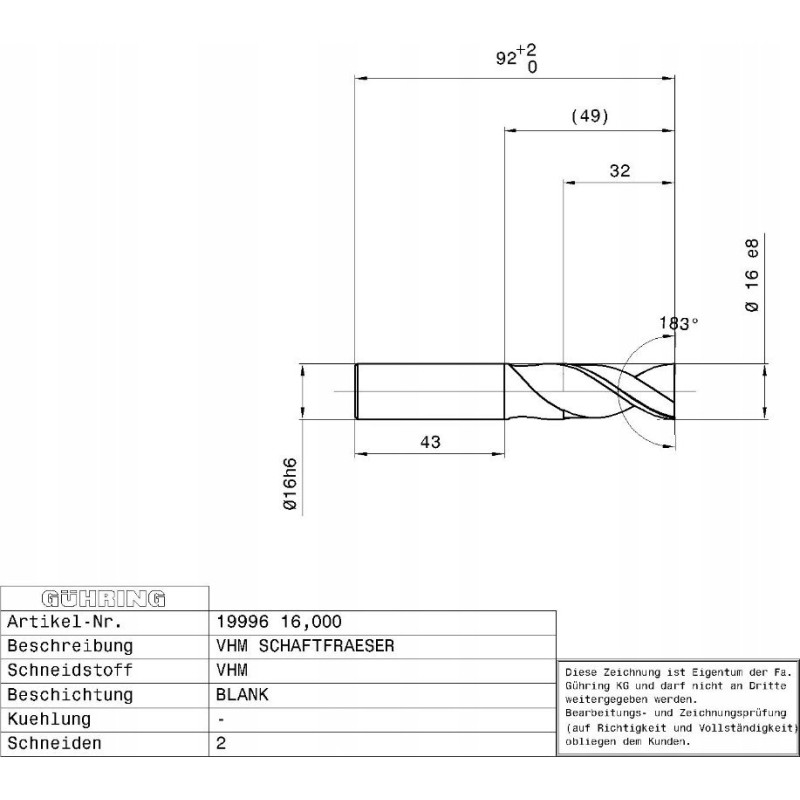 Ghring Carbide milling cutter GUHRING ALU 19996 12.0 mm