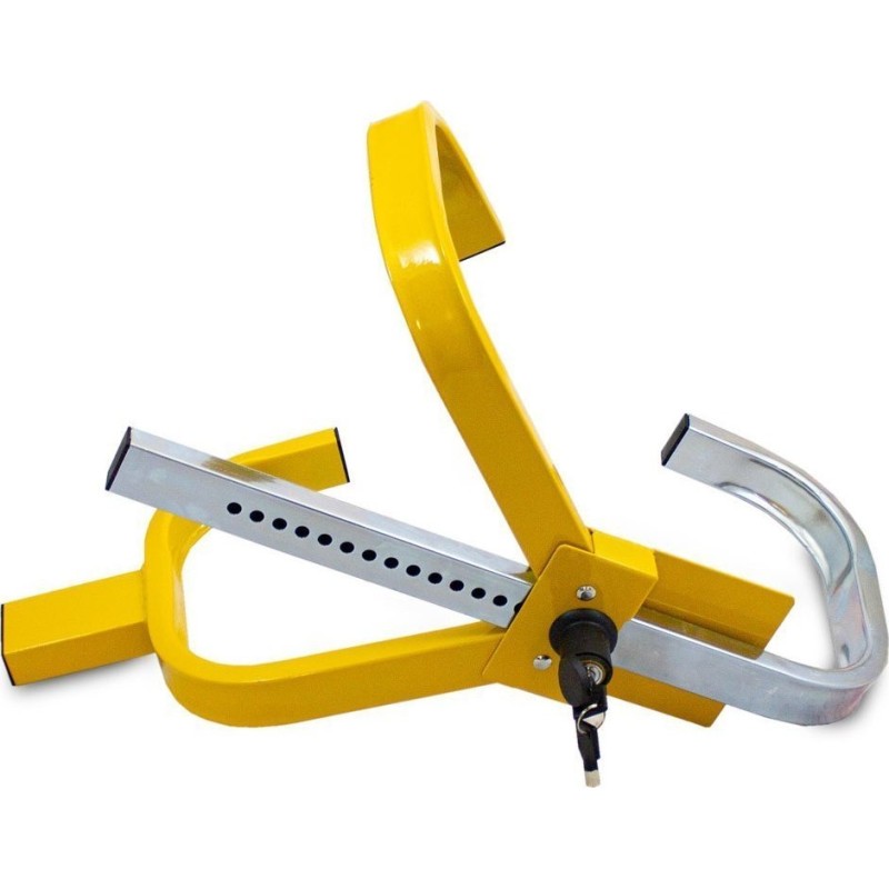 Za pomocą tego zabezpieczenia do kół możesz szybko i łatwo zablokować koła swojego samochodu. Blokada może być używana do kół o maksymalnej szerokości 215mm. Dzięki funkcji zapadki, zabezpieczenie koła można szybko i łatwo zamocować. Jest odporne na warunki atmosferyczne i nadaje się do samochodów, przyczep kempingowych, towarowych oraz kamperów. Do blokady dołączone są dwa klucze.