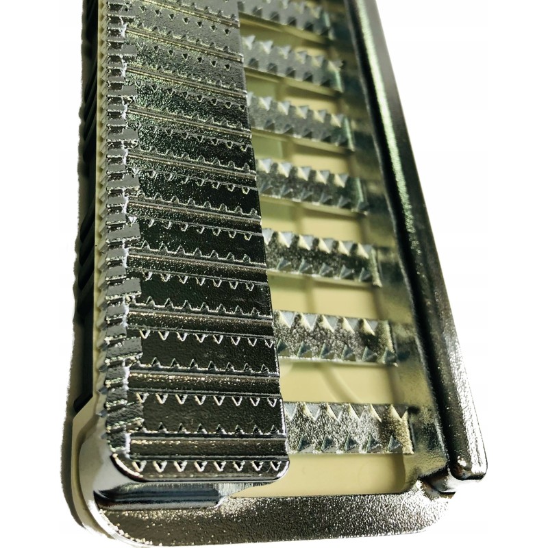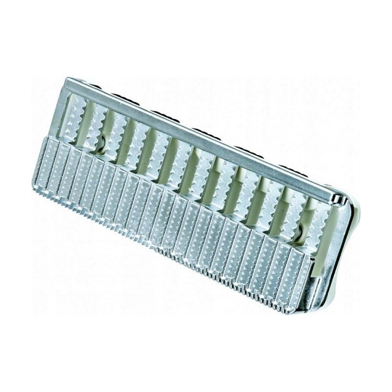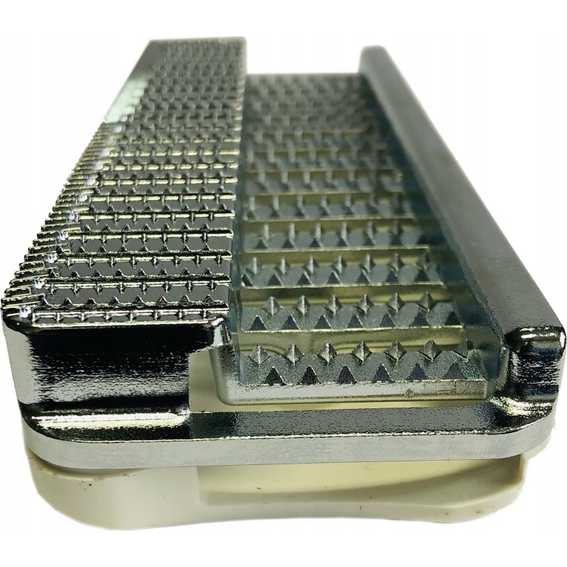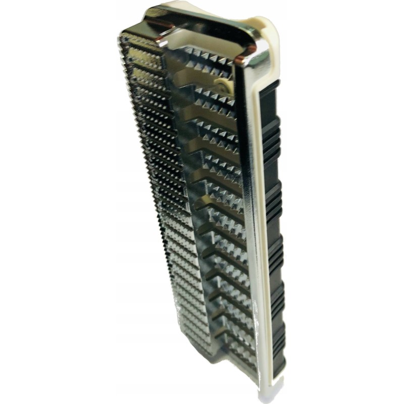 Specjalna konstrukcja tarki zapobiega blokowaniu się i gromadzeniu odpadów. Opatentowany system ostrzy Tetra-Teeth™ pozwala na szlifowanie w obu kierunkach. Elegancki wygląd o długości 7 cali z wbudowanymi wkładkami z elastomeru po obu stronach rękojeści zapewnia wygodne użytkowanie.
