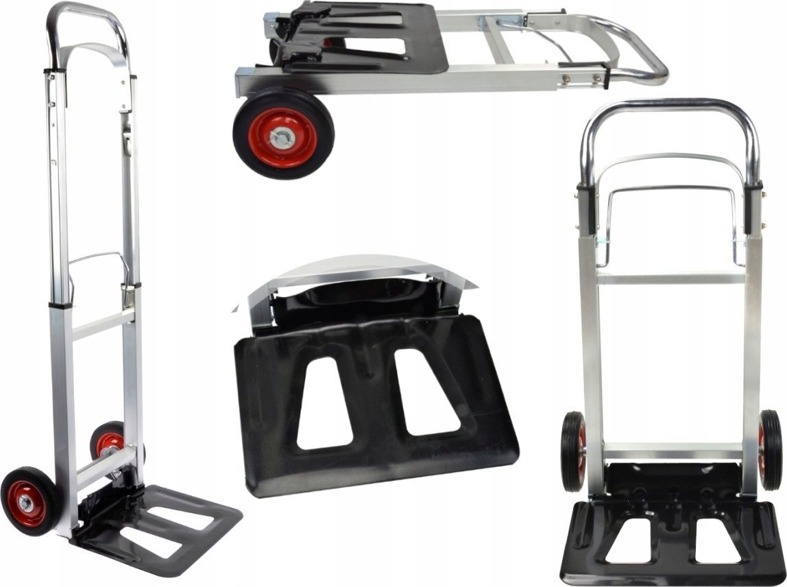 Wózek transportowy aluminiowy składany 90kg 240 x 355mm Składany aluminiowy wózek transportowy . Przeznaczony do przewożenia różnego rodzaju towarów których waga nie przekracza 90 kg . Wózek wykonany został z aluminium przez co jest bardzo lekki, a dodatkowa możliwość złożenia sprawia że wózek zajmuje bardzo mało miejsca. Cechy produktu: Maksymalne obciążenie: 90 kg Wymiary platformy: 240 x 350 mm Wysokość (rozłożony / złożony): 1080 / 720 mm Długość (rozłożony / złożony): 400 / 180 mm Szerokość(góra / dół): 300 / 390 mm Średnica kółka: 150 mm Szerokość: 40 mm Średnica wewnętrzna piasty: 16 mm Łatwość użycia i trwałość gwarantują wygodne i bezpieczne korzystanie z wózka.