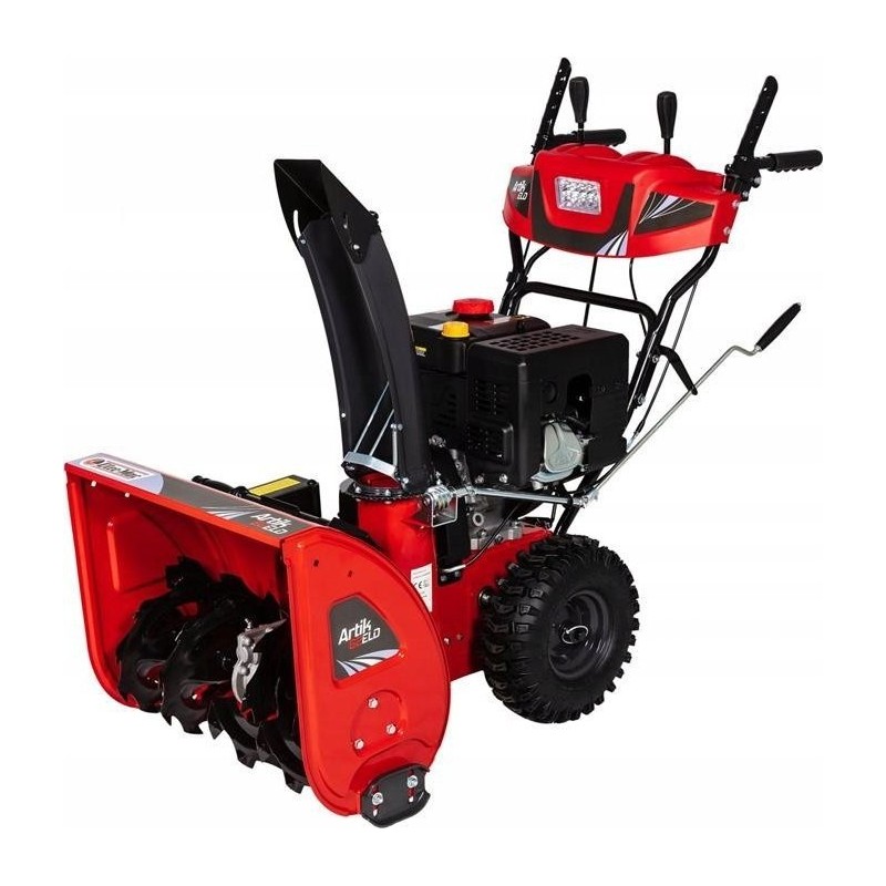 Odśnieżarki ARTIK są doskonałym rozwiązaniem dla osób, które chcą skutecznie poradzić sobie z zimą. Wyposażone są w zimowe, górnozaworowe silniki o wysokiej wydajności z elektrycznym lub manualnym rozruchem, zaprojektowane specjalnie na pracy w niskich temperaturach. Dwustopniowy wirnik z ząbkowanym frezem zapewnia optymalne efektywność, nawet podczas pracy w zbitym lub oblodzonym śniegu. Doskonała przyczepność na każdym rodzaju terenu osiągana jest dzięki specjalnemu, bieżnikowi opony wykonanemu w formie klocków.