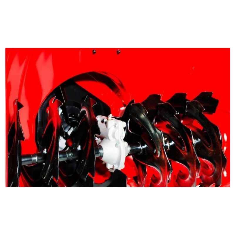 - Turbina dwustopniowa z zębatym frezem gwarantuje wysoką skuteczność także w przypadku ciężkiego lub zamarzniętego śniegu.