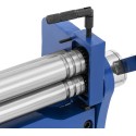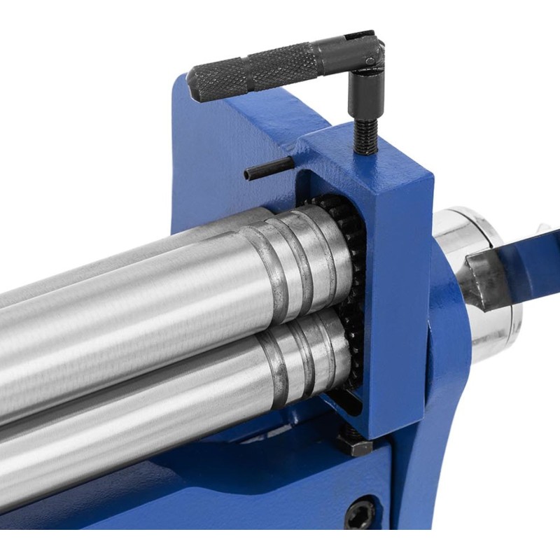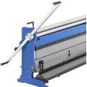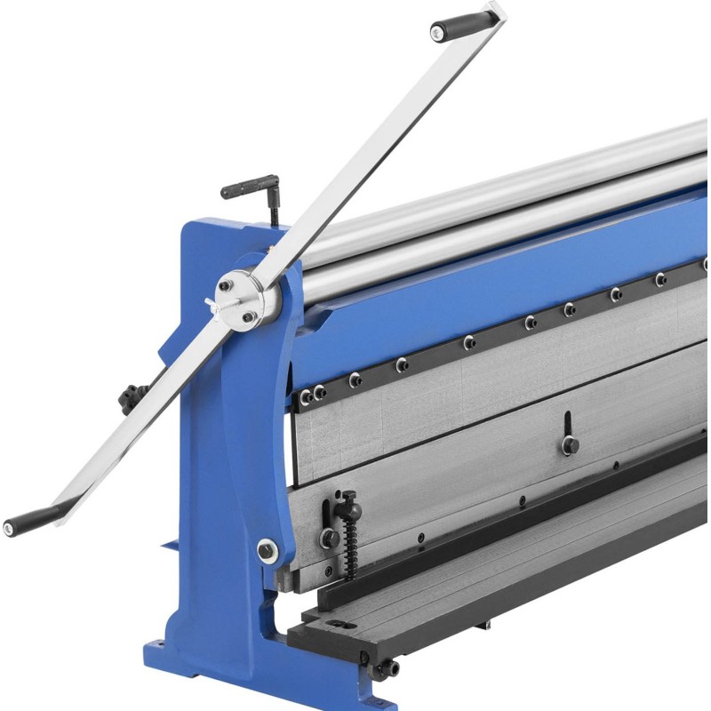 Ręczna giętarka do blachy marki MSW łączy w jednym urządzeniu trzy etapy pracy: cięcie, gięcie i prasowanie blach oraz metali wszelkiego rodzaju, dzięki czemu nadaje się do wielu zastosowań. Giętarka sprawdza się w produkcji przemysłowej np. w fabrykach i warsztatach. Walcarka do blachy posiada ostrze o długości 1040 mm wykonane ze stali sprężynowej 60Si2Mn. Materiał jest szczególnie wytrzymały, charakteryzuje się trwałością i jest prosty w konserwacji. Za pomocą sprzętu można przeciąć blachy do szerokości 1040 mm i grubości 1 mm. Za pomocą rolek można łatwo wygiąć blachę do pożądanego kształtu. Wymagany kąt ustawia się w zaledwie kilku prostych krokach, maksymalnie do 90°. Wymiary giętarki pozwalają z łatwością obrabiać blachy o maksymalnej szerokości 1016 mm. Giętarkę do blachy obsługuje się za pomocą 2 korb bocznych. Dzięki doskonałemu przenoszeniu mocy do zginania, walcowania i cięcia wymagana jest niewielka siła. Dzięki temu nawet niedoświadczone osoby mogą wygodnie obsługiwać urządzenie. Prasa krawędziowa została wykonana z solidnych i trwałych materiałów, takich jak żeliwo i stal. Przy odpowiedniej konserwacji i regularnym smarowaniu olejem maszynowym sprzęt będzie służył przez lata. Ciężar giętarki zapewnia jej stabilność. Aby całkowicie uniknąć przechylania się lub chybotania należy przymocować urządzenie do podłogi lub stołu warsztatowego.