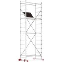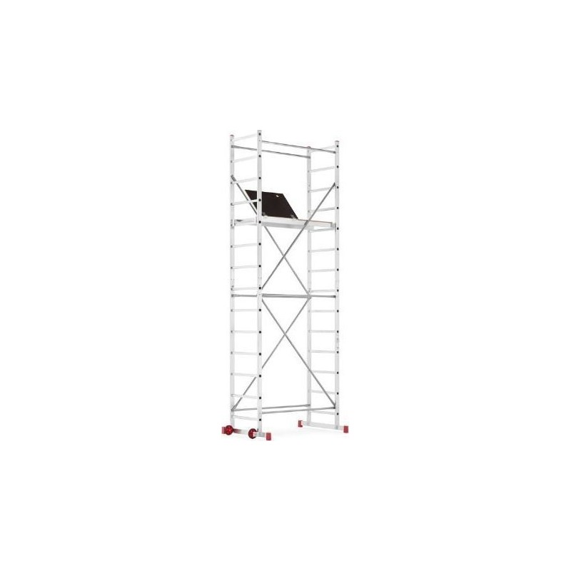 Parametry techniczneRusztowanie ma maksymalną wysokość roboczą wynoszącą 500 cm oraz wysokość konstrukcji 400 cm. Jego wymiary to 60 cm szerokości i 140 cm długości. Posiada antypopoślizgowy podest roboczy o wymiarach 50x125 cm oraz możliwość regulacji wysokości podestu co 25 cm.
