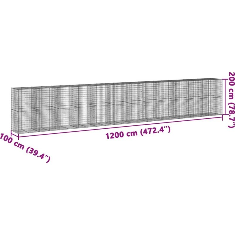 vidaXL vidaXL Kosz gabionowy z pokrywą, 1200x100x200 cm, galwanizowane żelazo