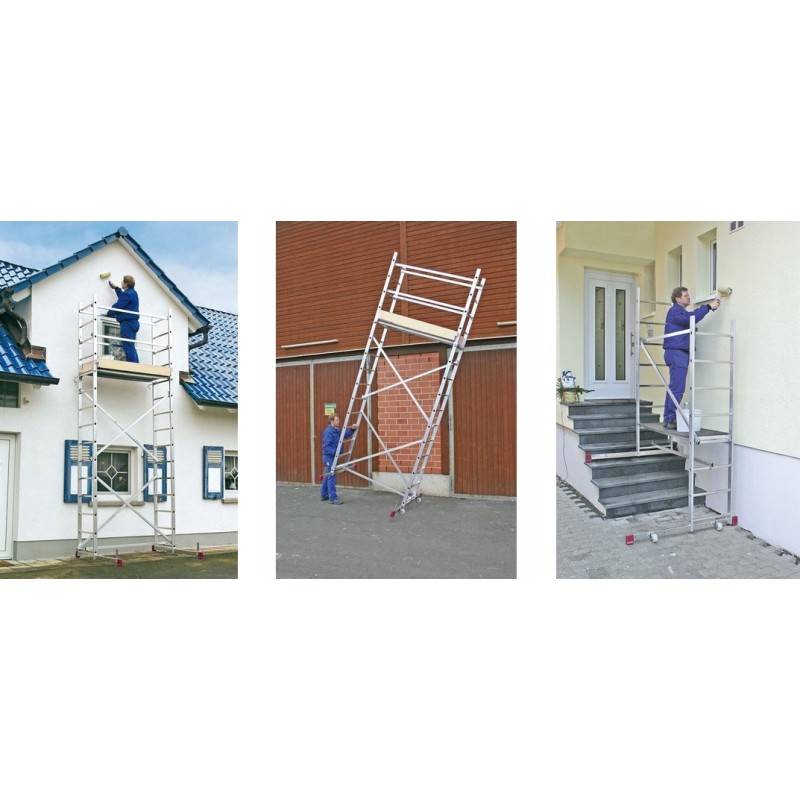 Rusztowanie montażowe o maksymalnej wysokości roboczej ok. 4,00 m. Szybki i łatwy montaż bez użycia narzędzi.