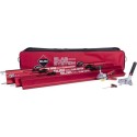SPECYFIKACJA:Ref. - 16900EAN-13 - 8413797169003Długość cięcia - 320 cmWysokość cięcia - 3-10 mmZ walizką - TAKWaga netto - 11 kgWaga brutto - 16,2 kgSystem cięcia ręcznego SLAB CUTTER G3 pozwala na wykonywanie precyzyjnych cięć wielkoformatowych płyt ceramicznych.Prowadnice G3 wykonane są z aluminium co zmniejsza wagę ucałego urządzenia. Nowoczesny projekt urządzenia zapobiega wypadaniu wózka z prowadnic i poprawia ich łączenie poprzez system szybkozłączy. Przecinarka SLAB CUTTER G3 ma w zestawie 3 prowadnice G3 pozwalające na cięcie elementów o długości do 320 cm. Dodanie kolejnych prowanic G3 zwiększa długość cięcia o 110 cm za każdą z nich.Każda prowadnica G3 wyposażona jest w dwie przyssawki posiadające gumową niebrudzącą podstawę, która umożliwia pracę na jasnych materiałach bez ryzyka ich zabrudzenia.Wózek z kółkiem tnącym jest bardzo lekki, wykonany z aluminium i zapewnia większą siłę nacinania. Ruch po prowadnicach jest bardzo gładki i precyzyjny, dzięki trzem łożyskom poziomym. Uchwyt "soft-grip" zapewnia użytkownikowi ergonomię i wygodę.Wózek przecinarki SLAB CUTTER wyposażony jest w kółk tnące O22 mm EXTREME, odpowiednie do pracy na chropowatych i strukturalnych powierzchniach, jak również na tych gładkich lub polerowanych.Każda przecinarka SLAB CUTTER G3 zawiera 3 prowadnice G3, wózek tnący oraz szczypce SLAB do łamania materiałów do 10 mm grubości. Szczypce SLAB mają podwójne zastosowanie: szczypce do łamania materiałów o grubości do 6 mm, oraz ścisk śrubowy do materiałów o grubości do 10 mm. Ta funkcjonalność szczypiec SLAB pozwala na wykonanie łamania minimalnym nakładem sił oraz efektywnie czasowo.Dla zabezpieczenia narządzia oraz ułatwienia przenoszenia i przechowywania, przecinarka SLAB CUTTER G3 ma w zestawie pratyczną torbę tekstylną, wzmocnioną i wyposażoną w wewnętrzne kieszenie na wszystkie komponenty.**...