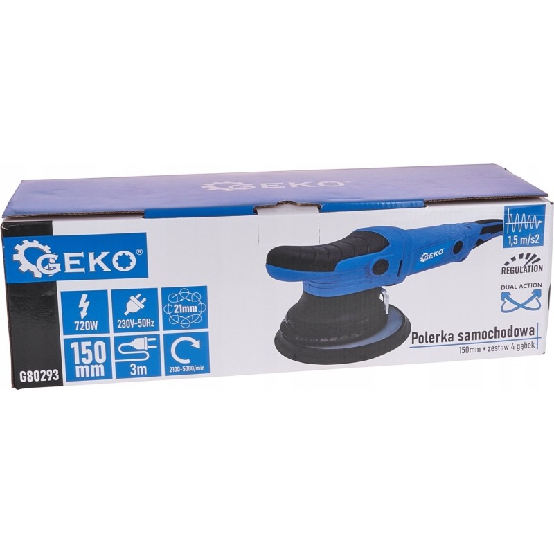 Geko Polerka samochodowa DUAL ACTION z regulacją 150mm PREMIUM + zestaw 4 gąbek (4)