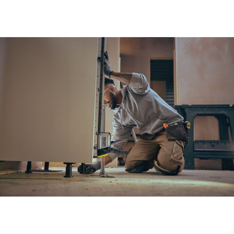 Podnośnik TradeLift™ został zaprojektowany, aby umożliwić samodzielną pracę przy montażu ciężkich elementów, takich jak okna, drzwi, szafki czy sprzęty. Dzięki solidnej konstrukcji narzędzie sprawdzi się w różnych zadaniach – od prac ciesielskich po montaż podłóg i zabudowy.