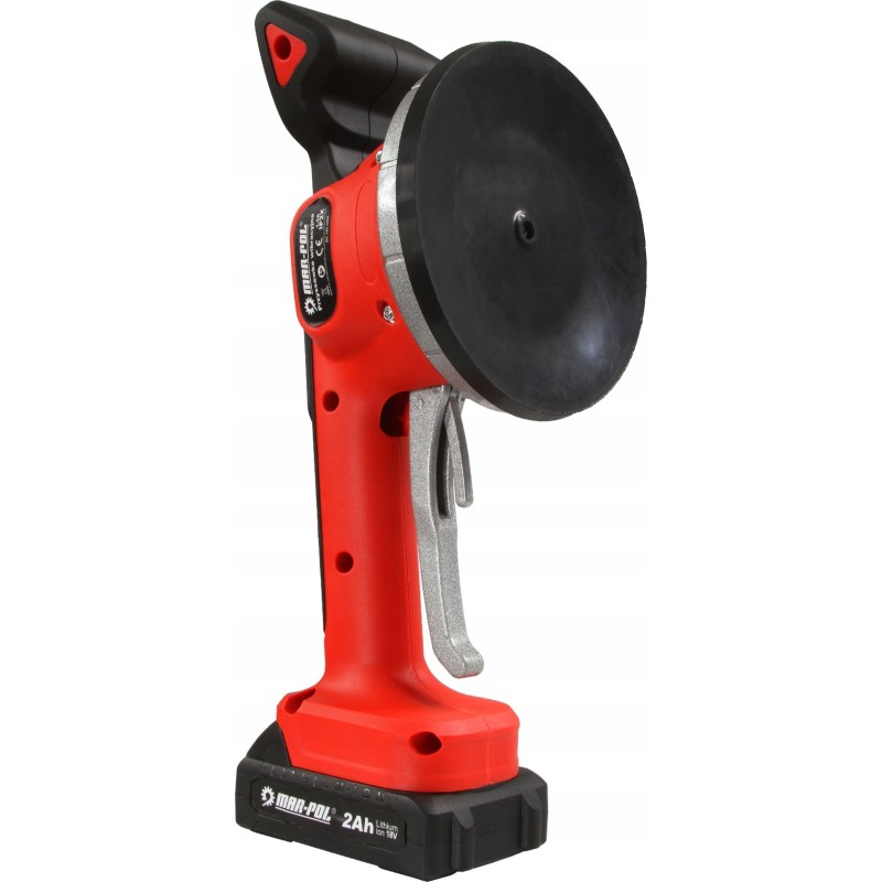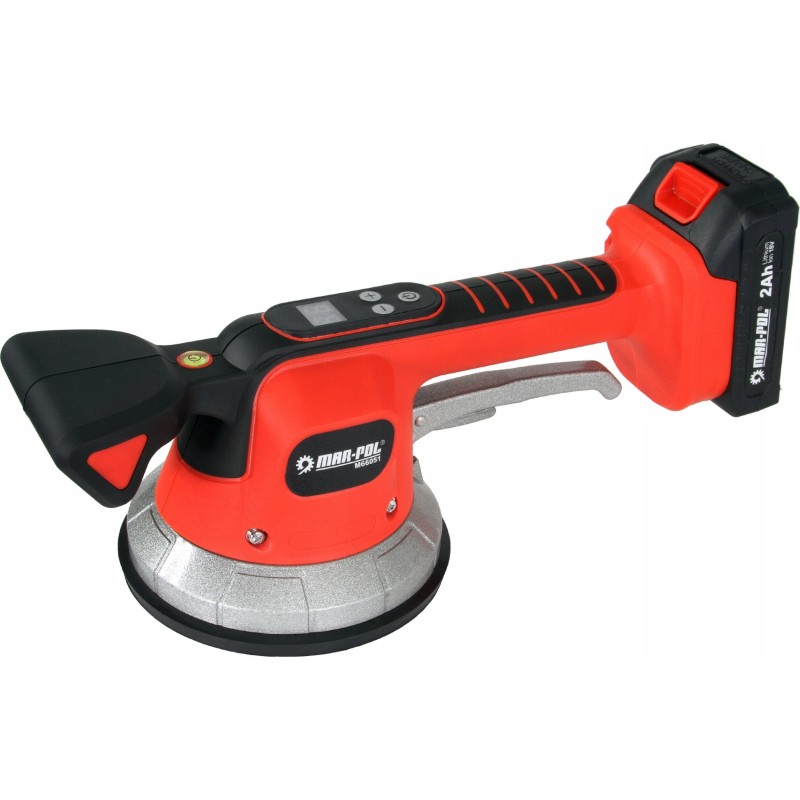 Przyssawka MAR-POL zasilana baterią litową 18 V może być wykorzystywana do układania płytek zarówno wewnątrz, jak i na zewnątrz. Zastępuje tradycyjne ręczne układanie oraz pomaga uniknąć problemów wynikających z nieprawidłowego rozprowadzenia kleju pod płytkami, zwłaszcza dużymi płytami.