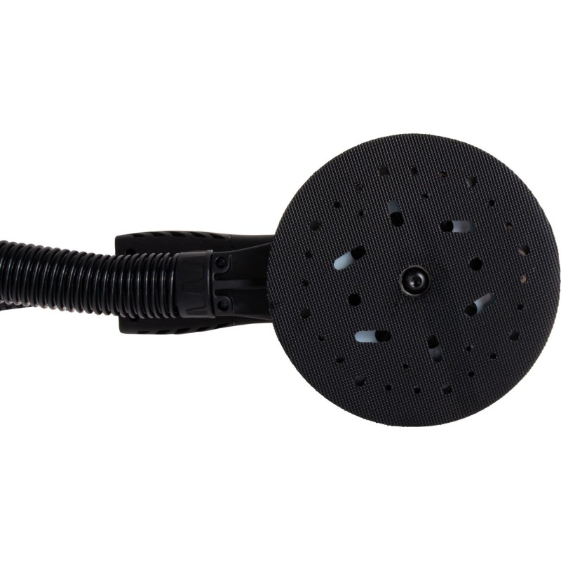 Szlifierka posiada tarczę o średnicy 150 mm z systemem DUAL ACTION, co oznacza, że dodatkowo wykonuje ona rotacyjne ruchy o skoku 5 mm.