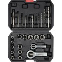 Uniwersalny 26-częściowy zestaw wykrętaków przeznaczonych do odkręcania śrub, szpilek i nakrętek.