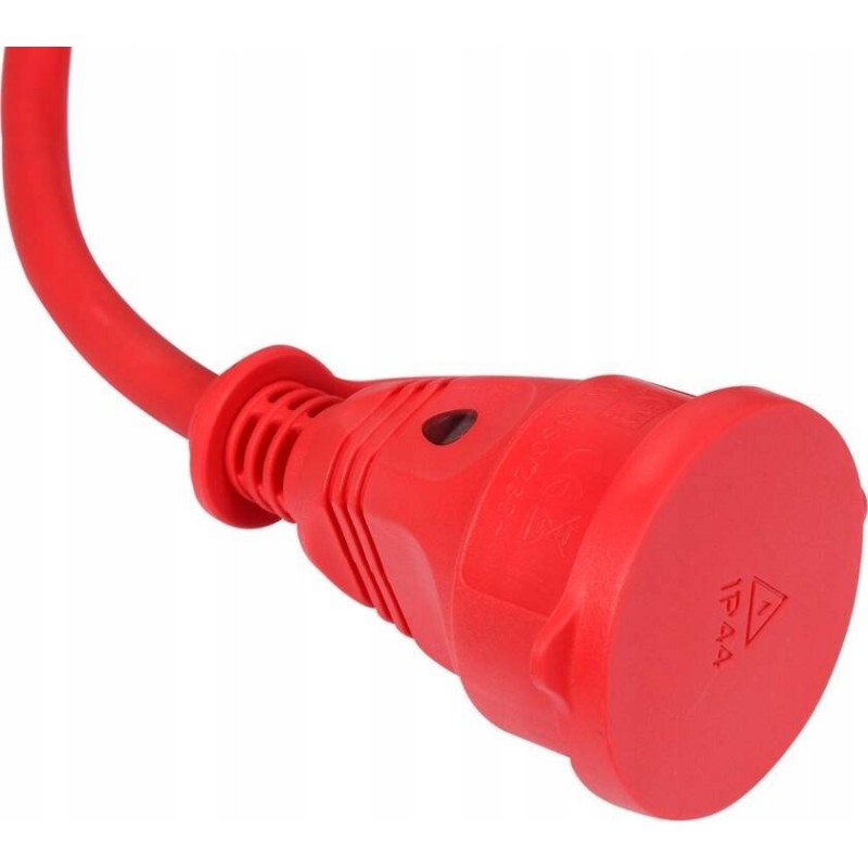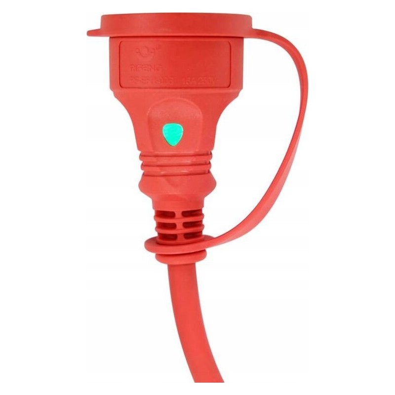 Przedłużacz budowlany z pyło i bryzgoszczelnym gniazdem z wbudowaną diodą LED, która informuje o obecności napięcia. Przewód w osłonie z chlorowanego polietylenu (CPE) sprawdzi się zarówno wewnątrz pomieszczeń jak i na zewnątrz. Jest odporny na działanie olejów, kwasów, większości rozpuszczalników i działanie promieni słonecznych. Zachowuje elastyczność na mrozie. Nie rozprzestrzenia ognia. Charakteryzuje się wysoką odpornością na starzenie.