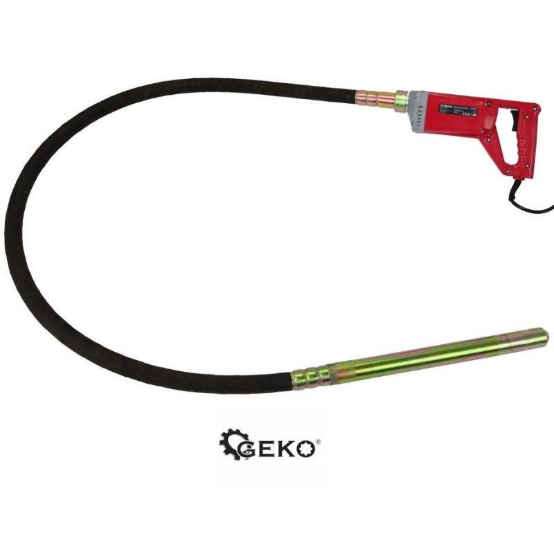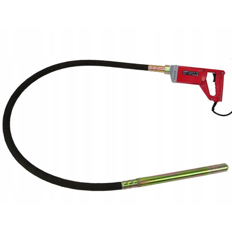 Wibrator wyposażony jest w elastyczny przewód, który został zbrojony taśmą stalową, co zapewnia jego wysoką wytrzymałość oraz odporność na uszkodzenia. To rozwiązanie gwarantuje długotrwałe użytkowanie nawet w trudnych warunkach budowlanych.