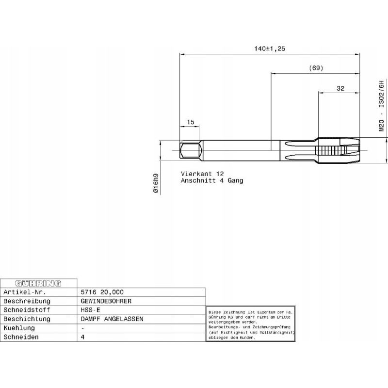 Ghring Machine tap GUHRING HSS-E 5716 DIN376 M20 x 2.5