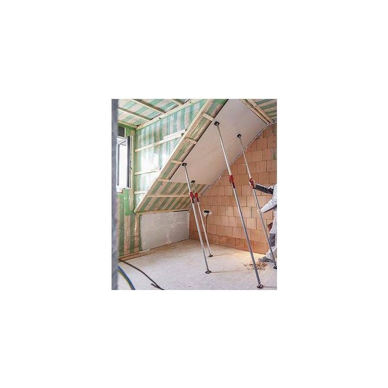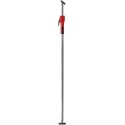 Podpórka sufitowa i montażowa Wykonanie: stalowa konstrukcja rurowa o dużej wytrzymałości z gumowanymi powierzchniami nośnymi z PCV, które odchylają się pod kątem 45°. Szybka regulacja za pomocą przycisku, precyzyjna regulacja jedną ręką za pomocą dźwigni, blokada przez przekręcenie. Przy całkowicie złożonym drążku teleskopowym podpórka może wytrzymać obciążenie do 350 kg.