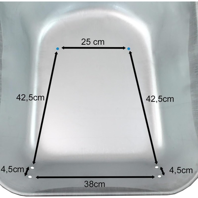 Wymienna misa do taczki dwukołowej marki Bituxx została wykonana z wytrzymałejk stali ocynkowanej o grubości 0,5mm. Misa posiada otwory montażowe. Dzięki dużej pojemności 100L sprawdzi się przy wielu pracach ogrodowych.