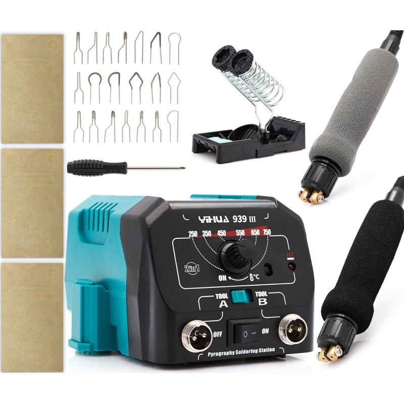 Pirograf / Wypalarka do drewna Yihua 939-III + 3 sztuki szbalonu ze sklejki do wypalania