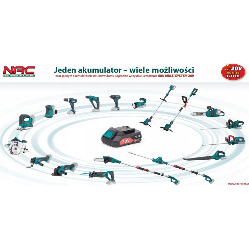 Urządzenie z linii NAC AKUMULTISYSTEM 20V: linia narzędzi akumulatorowych NAC, które korzystają z tej samej baterii.