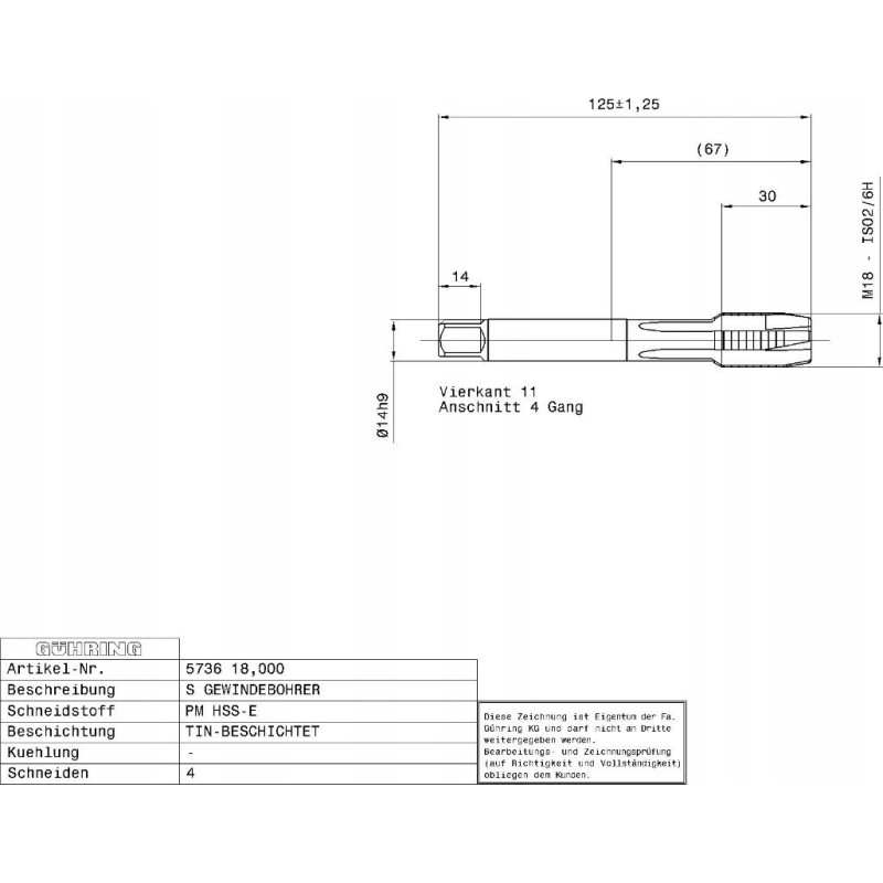 Ghring Machine tap HSS-E-PM TiN GUHRING M18 x 2.5