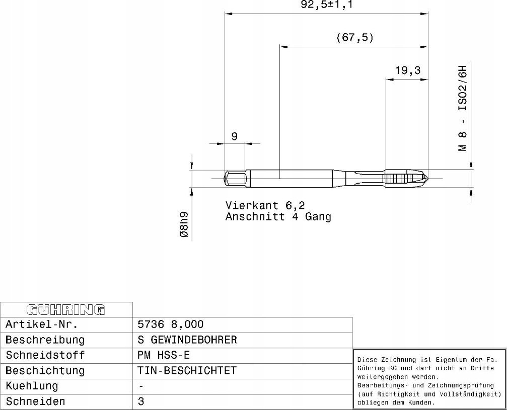 Oferta obejmuje Gwintownik GUHRING GERMANY