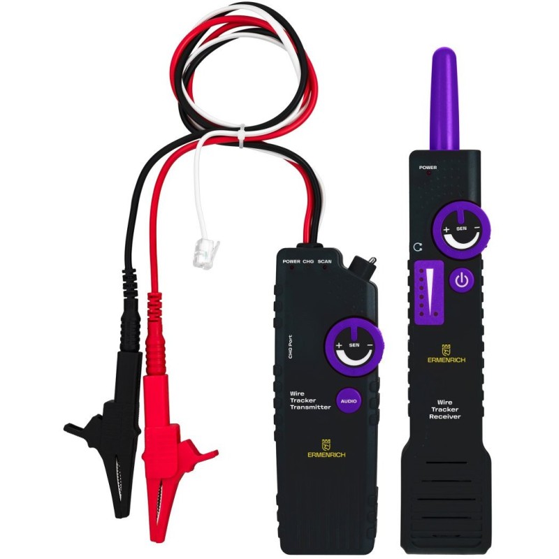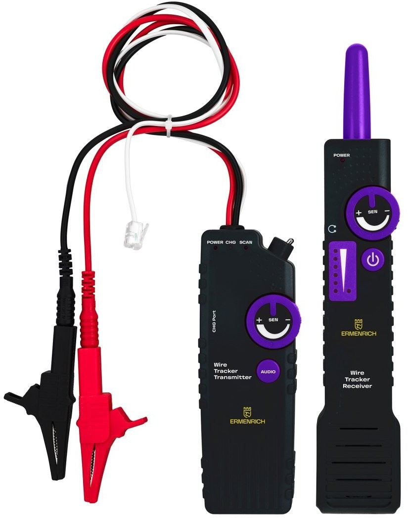 Urządzenie obejmuje nadajnik i odbiornik, których czułość można regulować oddzielnie. Obydwa urządzenia są zasilane wbudowanymi akumulatorami. Zestaw zawiera przewód ładowania. Wykrywacz przewodów Ermenrich Ping SM100 jest dostępny ze słuchawkami, które sprawdzają się podczas pracy w głośnym środowisku.