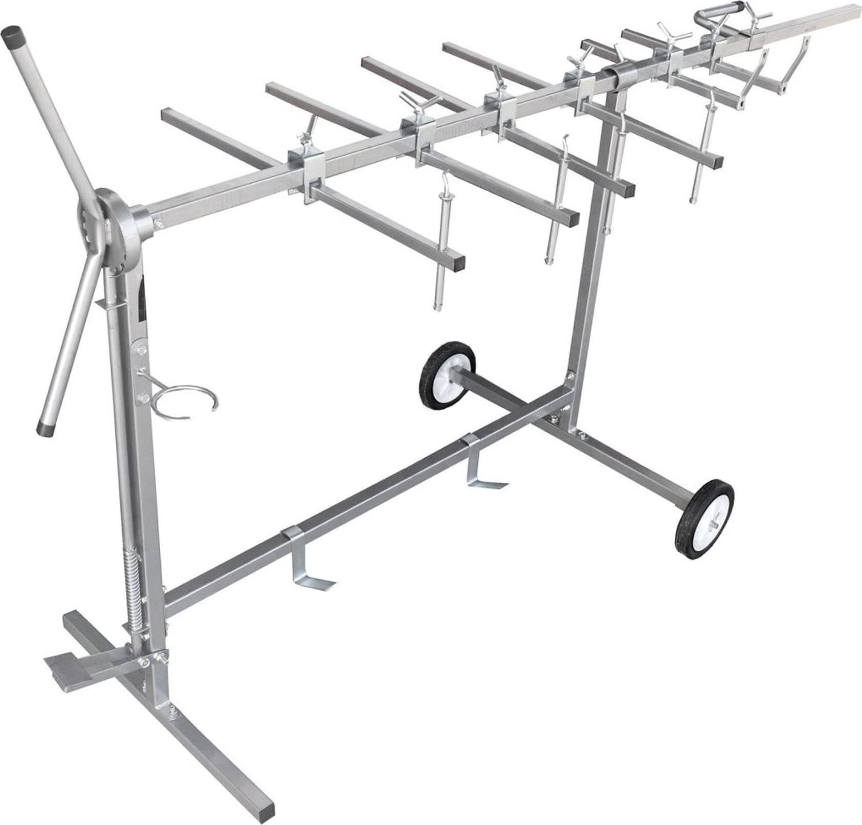 Stojak firmy BITUXX przeznaczony jest do lakierowani elementów karoserii takich jak zderzaki, drzwi, maska. Umożliwia ich proste zamocowanie i dostosowanie ich położenia. Stojak został wykonany z metalu i pomalowany proszkowo w celu zabezpieczenia przed korozją. Elementy takie jak śruby mocujące (motylki), haki zostały ocynkowane.