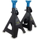 Wytrzymałe kobyłki pod samochód zostały wykonane z solidnych stalowych profili, dzięki czemu wytrzymują udźwig o masie 12 ton. Każda z podstawek posiada łatwą w obsłudze blokadę zapadkową. Możliwość 13 stopniowej regulacji w zakresie od 51cm do 78cm pozwala na dobranie właściwej wysokości podnoszonego podjazdu. Kobyłki są zakończone stopkami, które zapobiegają wbijaniu się w podłoże. Idealne do warsztatów, firm transportowych holowniczych i hobbystów.