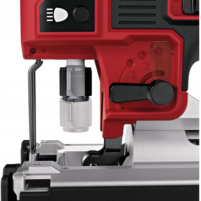 Wyrzynarka została wyposażona w system szybkiej wymiany brzeszczotu, co znacząco ułatwia i przyspiesza proces zmiany narzędzi. Dzięki tej funkcji możesz błyskawicznie dostosować wyrzynarkę do różnych materiałów, co zwiększa efektywność Twojej pracy.