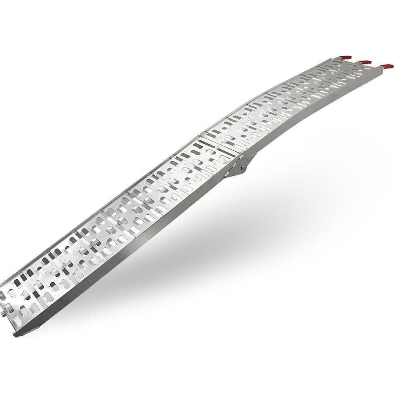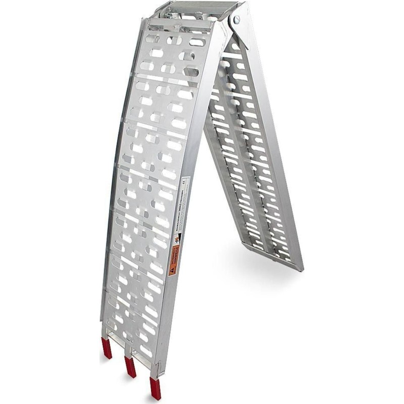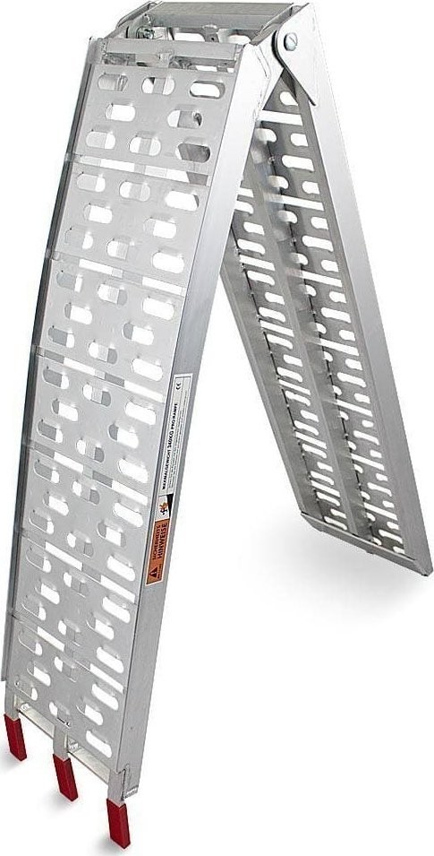 Rampa o udźwigu 340kg. Bardzo solidna i łatwa w użyciu. Idealna do załadunku motocykli, kosiarek, skuterów, sprzętu budowlanego, itp. Najazd jest składany, co ułatwia transport i przechowywanie.