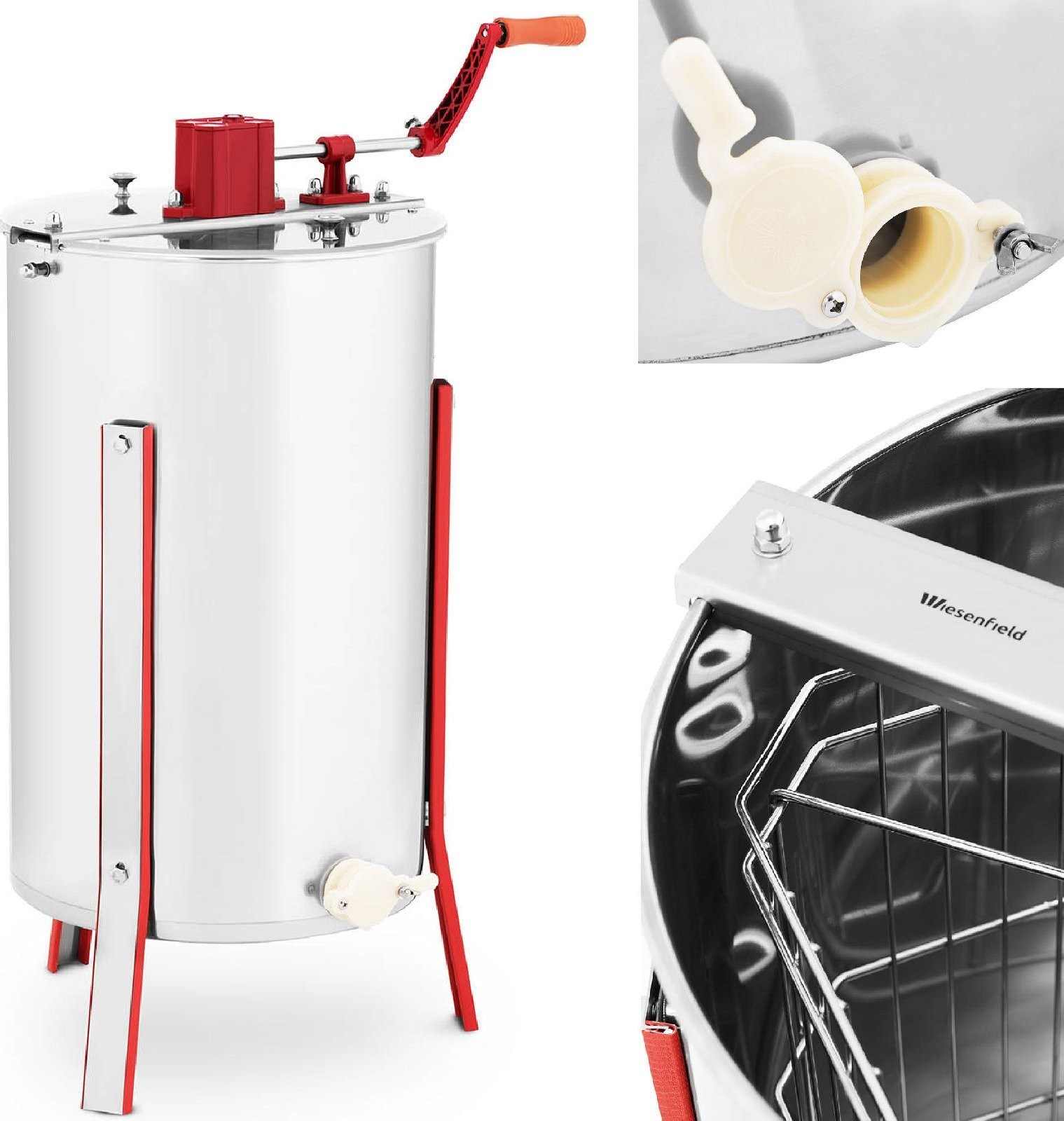 Wiesenfield Miodarka wirówka do miodu ręczna 3 ramkowa ze stali nierdzewnej Miodarka wirówka do miodu ręczna 3 ramkowa ze stali