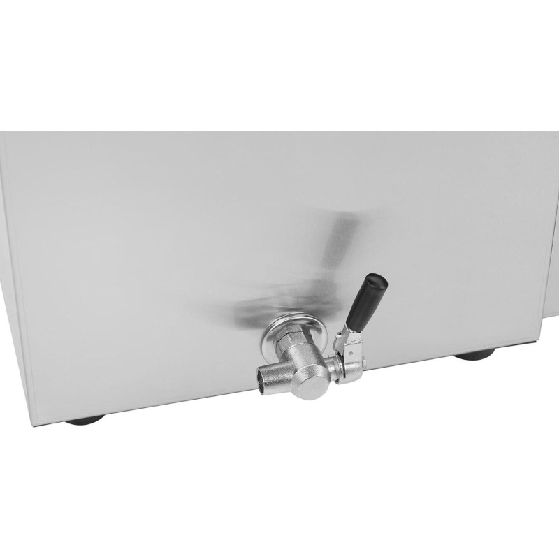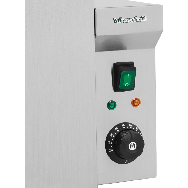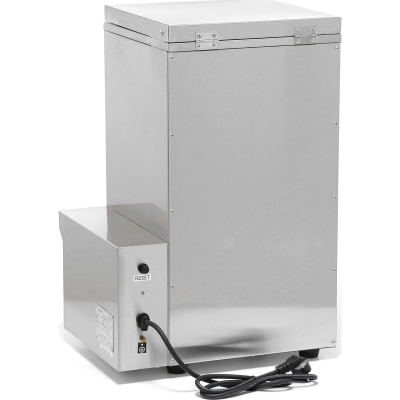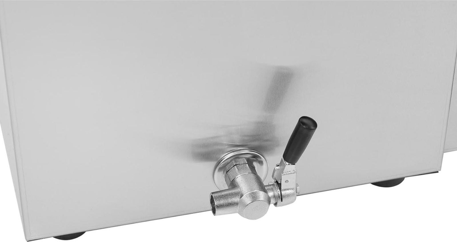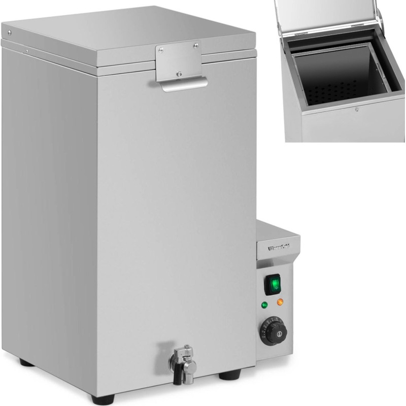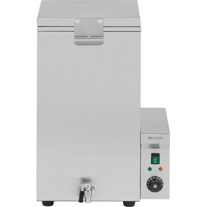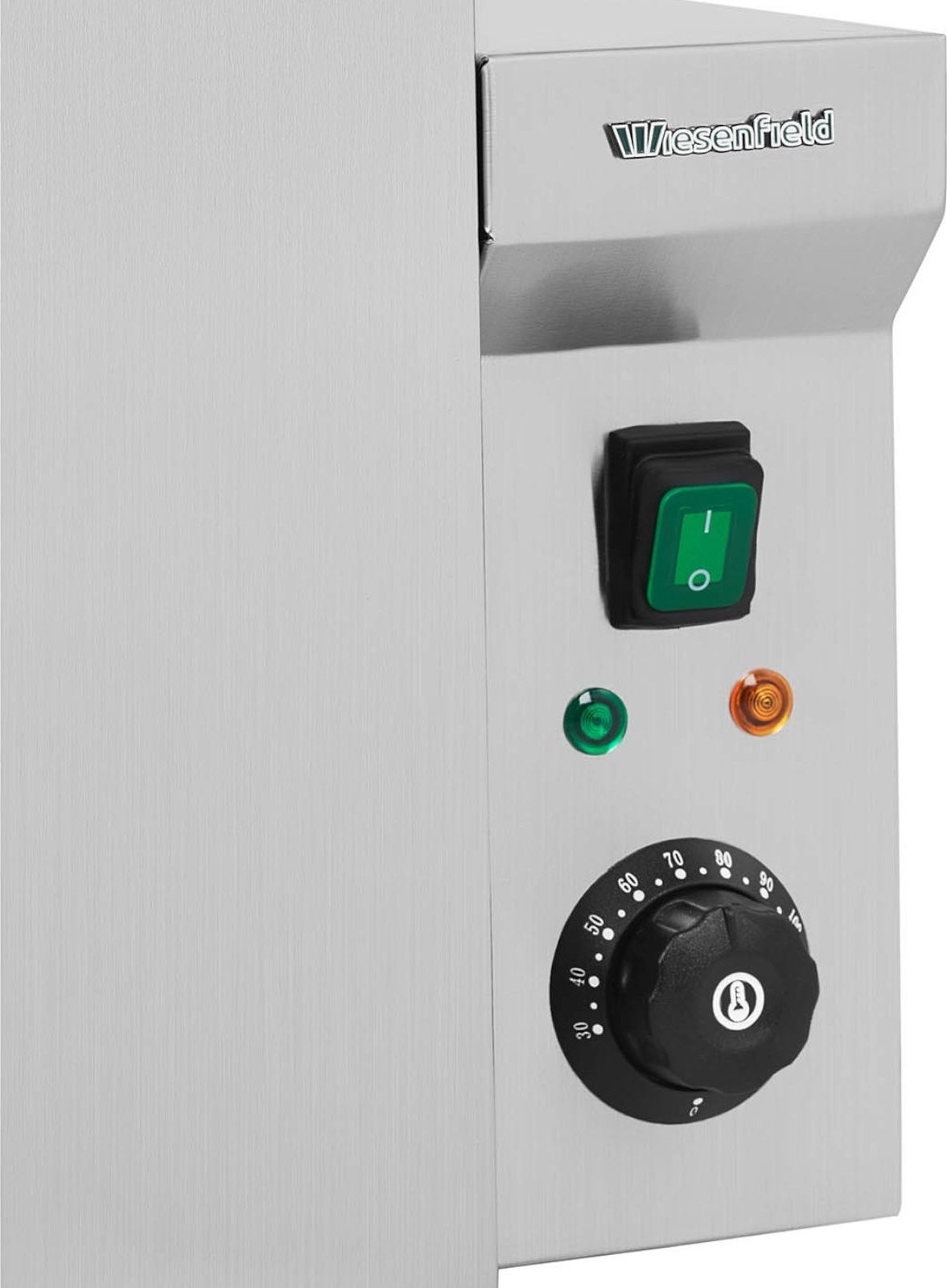 Oparzalnik do drobiu marki Wiesenfield idealnie sprawdza się w obróbce kurczaków przed umieszczeniem ich w skubarce. Otwarcie porów skóry pod wpływem wysokiej temperatury zapewnia później szybkie i wydajne usuwanie pierza. Sprzęt nadaje się również do kaczek, gęsi, bażantów oraz indyków. Maszyna jest w stanie wyparzać 3-5 kurczaków jednocześnie. Wewnątrz oparzalnika znajduje się wyjmowany stalowy kosz o wymiarach 290 x 290 x 510 mm. Sprzęt ma pojemność 70 l. Obudowa wykonana została ze stali nierdzewnej. Zachowanie czystości ułatwia kurek spustowy. Prosta obsługa dzięki pokrętłu do ustawiania temperatury i oddzielnemu przyciskowi do włączania/wyłączania. Czuły termostat odpowiada za sterowanie grzałką. Zaleca się oparzać: kurczaki w temp. 60-65°C przez 70-90 s, kaczki w temp. 63-66°C przez 160-180 s, gęsi w temp. 70-72°C przez 120-130 s, bażanty w temp. 63-67°C przez 70-90 s, indyki w temp. 51-54°C przez 80-95 s.