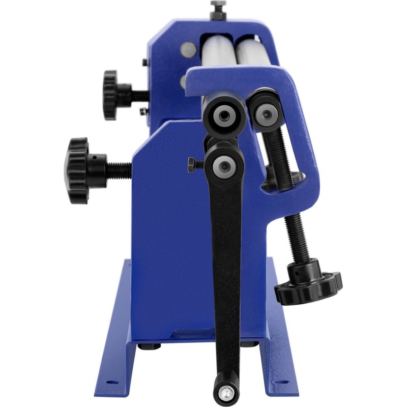 Urządzenie posiada trzy metalowe rolki za pomocą których można wykonać zgięcie, stożek czy cylinder z blachy. Za pomocą rowków natomiast można zwijać drut w łuk czy w koło. Wałki przystosowano do formowania materiału o maksymalnej szerokości 610mm i 0,8mm grubości. Ręczna korba umożliwia obracanie rolki podczas wkładania arkusza blachy do walcarki. Gumowa, antypoślizgowa rączka zapewnia wygodę pracy. Pokrętła dostosowują odległość między rolkami do grubości tworzywa. Górny walec umożliwia szybkie wyjęcie gotowego elementu i ułatwia konserwację. Urządzenie można zamontować do podłoża dzięki otworom w podstawie. Do stali miękkiej możliwej jest zastosowanie walcowania płaskiego, w efekcie otrzymuje się spłaszczony arkusz lub o nieznacznie zmniejszonej grubości. Walcarka nadaje się również do robienia łuków o stałym promieniu i cylindrów. Maksymalna grubość materiału wynosi 0,8 mm. Dzięki rowkom na wałkach zwijarka do blach uformuje także pręt, drut albo małą rurę o średnicy 2,4; 3,2 i 4 mm.