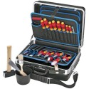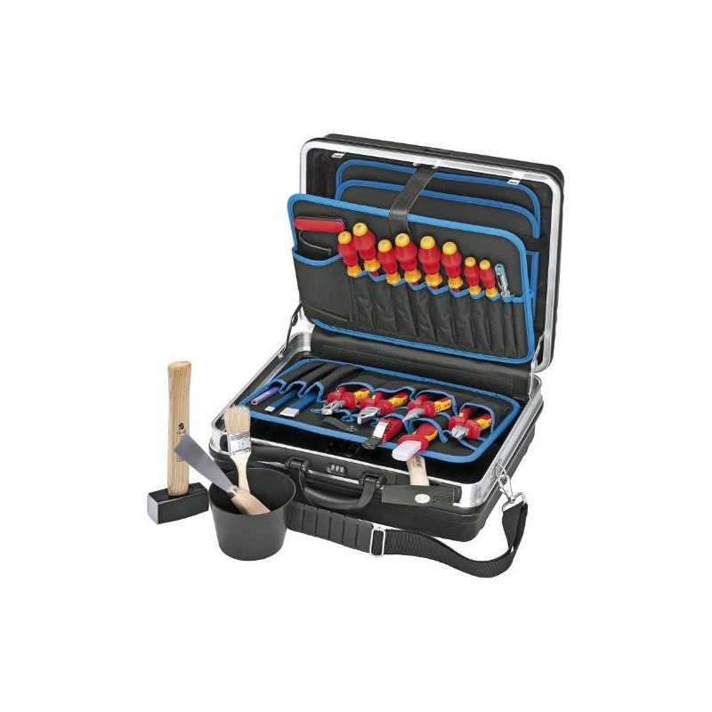 440 x 350 x 180 mm.Zakres dostawy: 1x VDE Szczypce uniwersalne 180 mm, 1x Szczypce zwykłe VDE 160 mm, 1x Szczypce boczne VDE 160 mm, 1x Szczypce do ściągania izolacji VDE 160 mm, 1x Szczypce do kabli VDE, 1x Nóż do kabli z ostrzem hakowym, 1x Wkrętak płaski VDE 2,5 x 80 mm, 1x Slot VDE Wkrętak 3,5 x 100 mm, 1x Wkrętak płaski VDE 5,5 x 125 mm, 1x Wkrętak płaski VDE 6,5 x 150 mm, 1x Wkrętak Phillips VDE Philips PH 1, 1x Wkrętak krzyżowy VDE Philips PH 2 , 1x śrubokręt krzyżakowy VDE Pozidriv PZ 1, 1x śrubokręt krzyżakowy VDE Pozidriv PZ 2, 1x tester napięcia jednobiegunowy, 1x dłuto elektryczne 250 x 10 mm, 1x dłuto kamienne 250 mm, 1x młotek naprawczy 300 g, 1x tłuczek 1000 g, 1x szczotka wodna, 1x szpachelka malarska, 1x paleta tynkowa, 1x ołówek stolarski, 1x piła ręczna