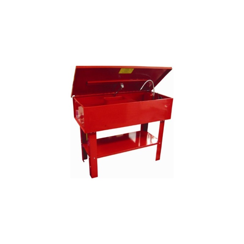 Opis produktuMyjka warsztatowa o pojemności 151 litrów, idealna do użytku w warsztatach. Wydajność pompy wynosi od 2,7 do 3,3 litra na minutę. Wymiary wnętrza kabiny to 106 x 52 x 27 cm, a całkowite wymiary to 109 cm szerokości, 54 cm długości i 89 cm wysokości. Głębokość zbiornika czyszczącego wynosi 20 cm. Myjka jest wyposażona w elastyczny stalowy kran, wykonana z lakierowanej blachy stalowej, posiada 4 stabilne metalowe nogi oraz dodatkową półkę między nogami. Solidne przykrycie z automatycznym podnośnikiem zapewnia wygodę użytkowania. Wewnątrz znajduje się dodatkowy pojemnik na mniejsze przedmioty lub części. Waga myjki wynosi 42 kg.