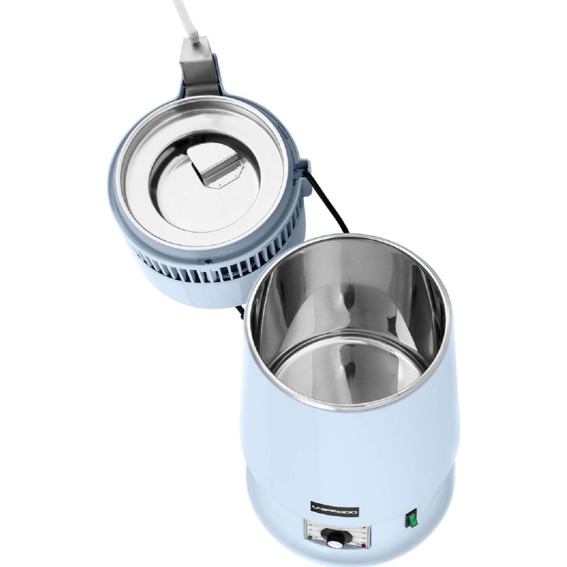 Destylator do wody marki Uniprodo pozwala pozbyć się metali ciężkich, bakterii i wirusów czy pozostałości farmaceutyków. Urządzenie radzi sobie z zanieczyszczeniami organicznymi (pestycydy, herbicydy) i nieorganicznymi (wapno, ołów). Sprzęt ma wysoką wydajność - 1 l/h. Pokrętło umożliwia regulację temperatury. Destylator wody automatycznie się wyłącza, kiedy ciecz osiągnie 160°C. Woda z destylatora nadaje się nie tylko do picia - można jej używać do takich sprzętów jak żelazka i parownice. Wewnętrzna ścianka produktu wykonana z najwyższej jakości stali nierdzewnej 304.