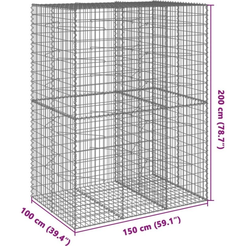 vidaXL vidaXL Kosz gabionowy z pokrywą, 150x100x200 cm, galwanizowane żelazo