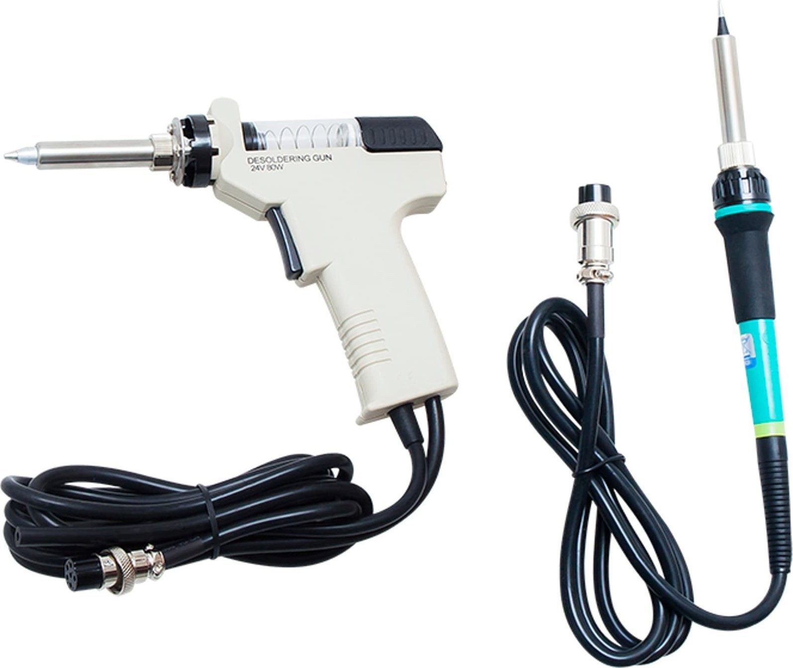 - Pistoletowa rękojeść z funkcją rozlutowywania umożliwia łatwe i szybkie usunięcie pozostałości cyny z jednostronnych i dwustronnych obwodów drukowanych
