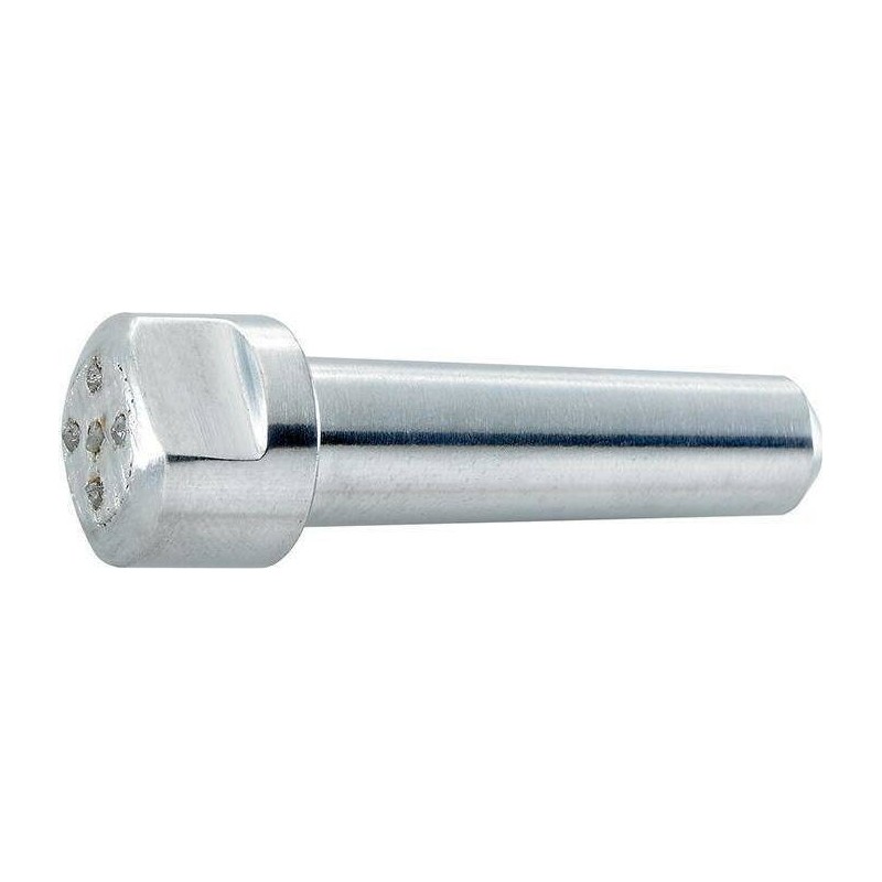 Obciągacz wielodiamentowy Wykonanie: 5 kamieni diamentowych osadzonych w specjalnej, spiekanej oprawce. Specjalny sposób osadzenia kamieni umożliwia ich zużycie do samego końca. Zastosowanie: Wielodiamentowy obciągacz jest praktycznym narzędziem do zgrubnego profilowania tarcz ściernych o wszystkich średnicach do grubości ziarna 100. Uwaga: w celu zwiększenia trwałości obciągacza należy zapewnić ciągłe chłodzenie w trakcie pracy. MK 1. Długość całkowita 57 mm.