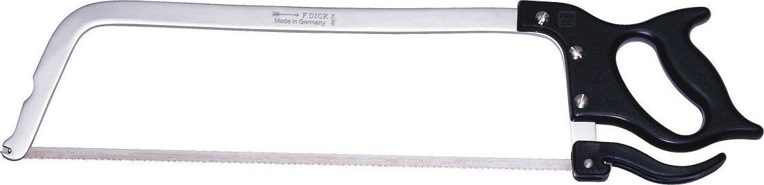 Piła do kości i mrożonek z wygodnym uchwytem z tworzywa sztucznego mocowanym za pomocą nitów.
