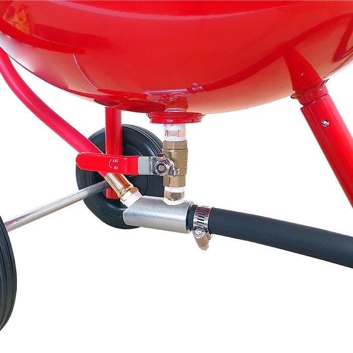 Piaskarka została zaprojektowana z myślą o łatwości transportu. Wyposażona w uchwyt prowadzący oraz dwa kółka, umożliwia swobodne manewrowanie, co jest szczególnie istotne podczas pracy w różnych lokalizacjach. Dodatkowo, stabilna stopka zapewnia bezpieczeństwo podczas użytkowania.