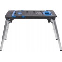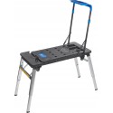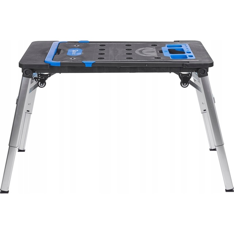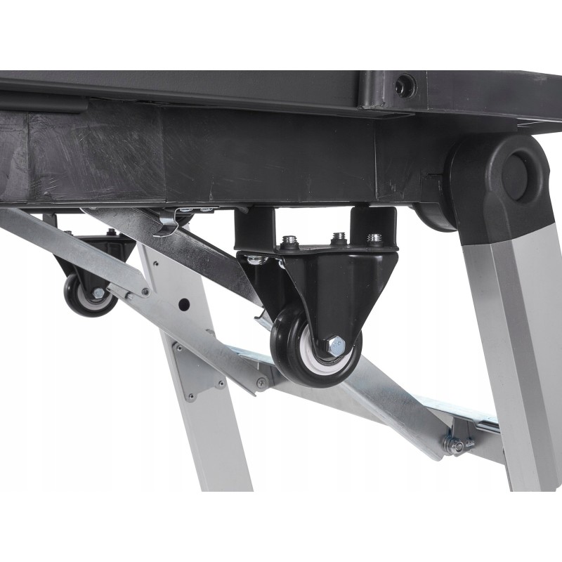 Może być wykorzystywany jako stabilne rusztowanie lub podest roboczy. W zestawie znajdują się kółka, dzięki którym stół zamienia się w wózek.