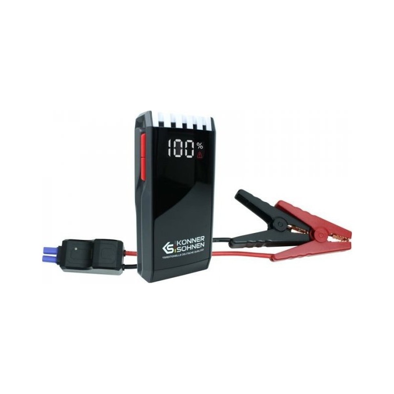 Dane techniczne: Typ wbudowanego akumulatoraLitowo-jonowy Bateria, mAh18000 Wyjście USB5V/3A, 5V/2A Lampa LED+ Znamionowy prąd rozruchowy, A700 Szczytowy prąd rozruchowy, A1400 Czas ładowania urządzenia, godzin4-5 Temperatura pracy, °C-20°C ... +60°C Wymiary netto (DxSxW), mm193 x 98 x 39 Wymiary brutto (DxSxW), mm240 x 152 x 95 Waga brutto, kg0.95 Opis: Urządzenie rozruchowe KS JS-1400 będzie niezastąpione w przypadkach, gdy akumulator samochodu jest rozładowany lub gdy jego energia nie jest wystarcza do uruchomienia silnika, co jest szczególnie ważne w zimnych porach roku. Wyposażony jest w najnowocześniejszy, wysokiej jakości akumulator litowo-jonowy 18000 mAh o wysokim prądzie rozruchowym do 1400 A, który pozwala na uruchomienie pojazdów z silnikami benzynowymi do 10 litrów i silnikami diesla do 6 litrów w ciągu kilku sekund. Zaciski posiadają dodatkowe połączenie płytek mocujących za pomocą przewodu, co pozwala na zwiększenie powierzchni mocowania oraz zmniejszenie oporów podczas przenoszenia mocy. Urządzenie KS JS-1400 jest wyposażone w dwa złącza wyjściowe USB o natężeniu prądu 2A i 3A, co wystarcza do ładowania wielu różnych urządzeń. Wygodna i kompaktowa ładowarka 3 w 1 KS JS-1400 zmieści się w schowku Twojego samochodu, zawiera torbę do przechowywania, kabel z zaciskami do akumulatora i kabel do ładowania urządzenia. Teraz będziesz potrzebował minimalnego wysiłku, aby uruchomić silnik swojego samochodu. ...