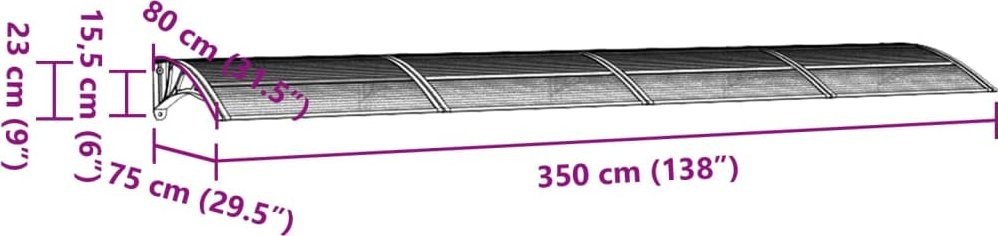 vidaXL vidaXL Daszek nad drzwi, czarno-przezroczysty, 350x75 cm, poliwęglan