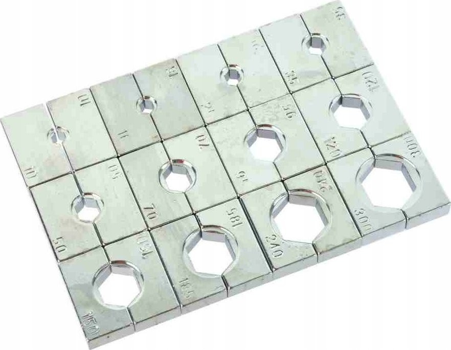 - zestaw 12 matryc w rozmiarach 10-300 mm2; wykonane z hartowanej stali z chromowanym wykończeniem