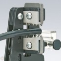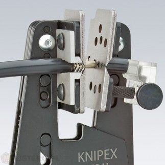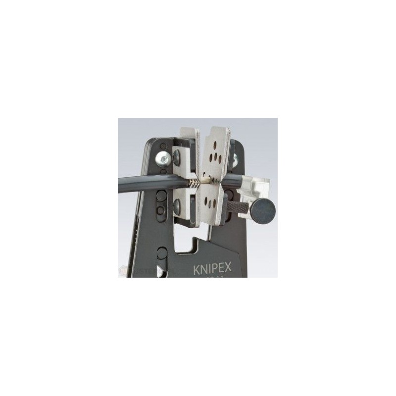 Profesjonalne szczypce do ściągania izolacji, firmy Knipex. Opatentowany system do ściągania izolacji sprawia, że praca tym narzędziem jest prosta w efektywna. Dodatkowy prowadnik przewodu umożliwia dokładne ustawienie przewodu względem ostrzy ściągających izolację.