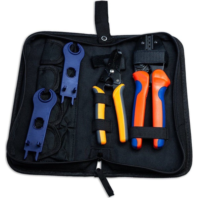 Komplet wysokiej jakości narzędzi kompatybilnych ze złączami MC4 oraz najpopularniejszym okablowaniem używanym w fotowoltaice.