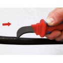Profesjonalny Nóż do Kabli H.D. Nr 1000 Weicon WŁAŚCIWOŚCI: Praca pod napięciem 1000V Szybkie nacinanie wielokrotnie zaizolowanych kabli. Ochrona przewodów przez łagodnie klinowo uformowany czubek ostrza. Dobre przenoszenie siły dzięki zoptymalizowanej formie uchwytu. Od 1967 roku z sukcesami projektują, produkują i dystrybuują wysokiej jakości narzędzia do zdejmowania izolacji i inne przeznaczone dla przemysłu i profesjonalnych użytkowników. Należą do nich noże do kabli, wielofunkcyjne ściągacez i szczypce do ściągania izolacji. Narzędzia WEICON TOOLS zostały opracowane do precyzyjnego, szybkiego i ezpiecznego zdejmowania wszystkich popularnych typów kabli.